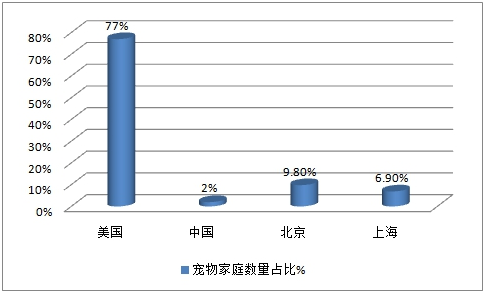 我國與發達國家相比擁有寵物的家庭較少,美國家庭寵物擁有量能夠達到77%左右,而我國平均家庭擁有寵物2%左右,與發達國家相比我國寵物家庭擁有量較低。 2015年寵物市場家庭擁有量 目前我
