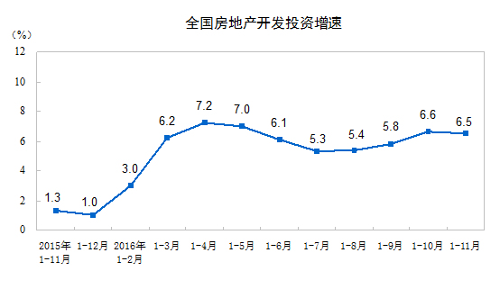 2016年1-11月份全國房地產(chǎn)開發(fā)投資和銷售情況