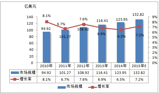 全球牙科包含牙科照護(hù)及相關(guān)器材、設(shè)備的市場(chǎng),至2015年底將超過130億美元。其中,專業(yè)儀器設(shè)備為44.6億美元,而牙科照護(hù)相關(guān)耗材與材料市場(chǎng)將達(dá)到88.2億美元。牙科專業(yè)儀器設(shè)備的市場(chǎng)平均年成長...