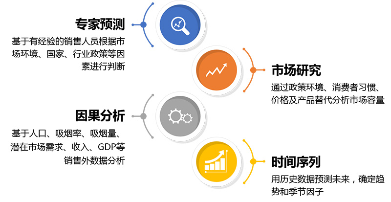華夏經緯在多年服務國內煙草行業的經驗基礎上,對市場容量推算和預測有著成熟的理解,在實操中將融合常見的幾種市場容量預測模型。