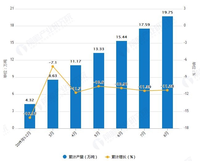2019年1-8月湖南省合成洗滌劑產量及增長情況